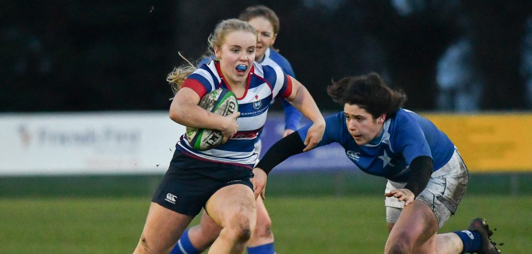 The industrious Hannah O’Connor profited from some uncertainty in the Marys in-goal to notch the eight try and take the final score to 48-0 to Blackrock who move up to 3rd in the table.