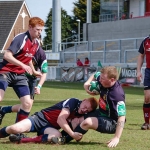 ‘Skins had more opportunities to go further ahead as they pounded the Monaghan line but it was the Monaghan men who were next to score with a well executed try by centre Jo Jo Sheridan who crashed over under the posts, taking a fair few of the ‘Skins defence with him. Scrum half Jonny Reid converted taking the score to 3 – 7.