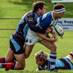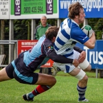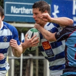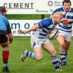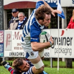 Dungannon continued to press, running the ball at every opportunity and the home side went further ahead when Chris Cochrane found himself in space in midfield and the blond bomber raced for the corner to score to push Dungannon’s lead to 10 -0.