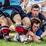Having come close on several occasions Harlequins eventually forced their way over the line for a well deserved try, taking the score to 20 – 5. The visitors pressed hard for further scores but the Dungannon defence stood firm and the match went through a scrappy period with quite a few mistakes from both sides who were now thoroughly drenched!