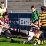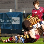 Fifteen minutes before the end, both sides made a number of changes, RBAI looking to defend their lead and Coleraine looking for more attacking options. It appeared that Coleraine had made the better choices as they started to control the game, but a number of loose passes and knock-ons broke their rhythm and left captain, Patrick Farrell, looking very frustrated.