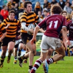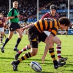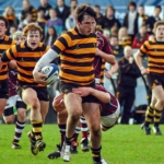 From the subsequent kick-off, Coleraine’s kick did not travel at least ten metres, and this proved to be costly: the RBAI fullback, McGuigan, was the provider again, scoring a delightful drop-goal just inside the 22 to increase his team’s lead.
