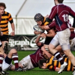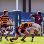 Belfast Inst’s final score was perhaps the best moment in a game littered with errors: after moving the ball across field a number of times, the Coleraine defence was stretched and left Matthew Madill one-on-one with the defender. Instead of going alone, he chipped a perfectly weighted kick beyond the line which no. 10, Gareth Lawlor, was only to keen to pounce upon. McGuigan was wide this time with the conversion attempt, but RBAI didn’t care too much as they had a healthy lead.