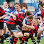 Dungannon pushed hard to get on equal terms moving the ball at every opportunity but on one such occasion a crunching tackle on Dungannon full back Robin McCleary dislodged the ball for Rainey wing forward Gavin McGuckin to pounce on the loose ball. A nice exchange between McGuckin and centre James McBride ended with McBride crossing the line to take the score to 14- 0, Walls again adding the extras.