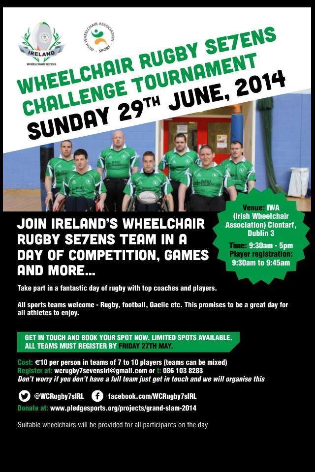 The sport is open to all players, both disabled and able bodied, and in search of further competition the Ireland Wheelchair Sevens side are inviting all comers to another wheelchair rugby challenge this weekend, Sunday 29th June at the Irish Wheelchair Association, Clontarf, Dublin 3.