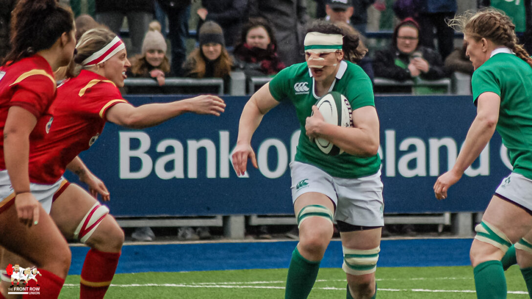 Wales got off to a sprightly start with out half, Robyn Wilkins slotting over a penalty on the fourth minute to give the visitors a 3 – 0 lead. Niamh Briggs responded shortly after to level the game and from that point on the Irish pack pretty much dominated proceedings with Spence and Claire Molloy prominent.
