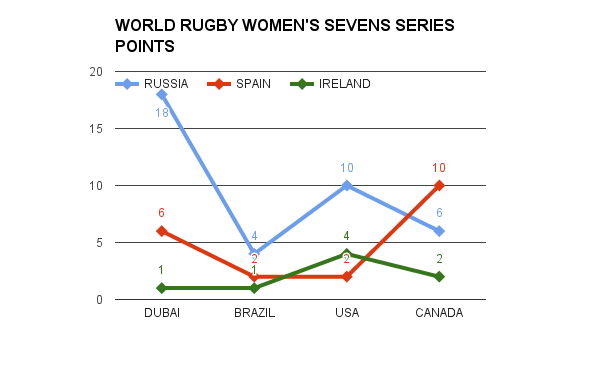 In fairness to Ireland, things can change pretty quickly in the sevens game as can be seen by the changes to points secured by Spain and Russia over the first four rounds: