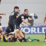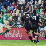 It was just such play that got Ireland off the mark after two minutes with Johnston slotting over a penalty for Ireland after pressure from Shane Daly. New Zealand hit back with a well taken try by Jordie Barrett, who also converted to give New Zealand a 7 – 3 lead.
