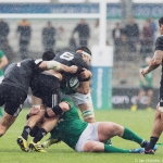 Conditions worsened somewhat, as the constant rain turned torrential, and New Zealand adapted for Malo Tuitama to cross out wide as Ireland’s defence lost their footing. Crucially however the conversion was missed leaving Ireland with a four point lead to defend with over thirty minutes remaining.