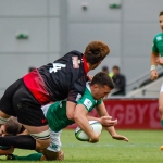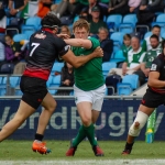 However it was 7 – 7 three minutes later when Hugo Keenan sprinted clear down the left after quick hands from Johnny McPhillips and Terry Kennedy. McPhillips added the extras to level the score and Ireland received a second boost when Georgia’s Spanderashvili was red carded after a fairly innocuous looking scuffle with Greg Jones.