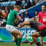 The doughty Georgians still provided plenty of resistance, but McPhillps kept the scoreboard ticking over with two well struck penalties, taking the score to 13 – 7, before the Ulster out half jinked through the defence for Ireland’s second try on the 35th minute. McPhillips converted his own try and Ireland took a 20 – 7 lead into the break.