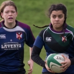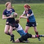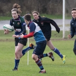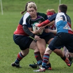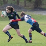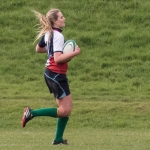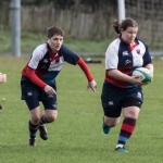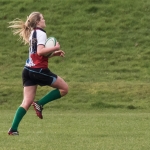 Harlequins, missing a number of players due to injury, could only field 11, however great recruiting among the student population meant Queen’s had 22! However the students lack of match experience showed as Quins scored their first try within minutes of the kick off with rookie Liadh Broughton gassing the wing for the first of her bag of tries. Queen’s rallied from the early upset though and settled into the game well with some fluid passing and penetrating runs.