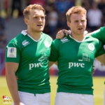 Calvin Nash made a break down the left and sent through an inviting grubber for Gavin Mullin to chase. Unfortunately, the bounce of the ball left Mullen grasping air as its made it’s way to the touchline. Ireland stole the resulting line-out and Ciaran Frawley crossed only to be held up.