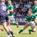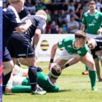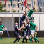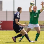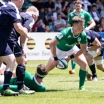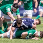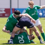 Play was brought back to a penalty which Conor Dean comfortably converted. Three minutes later Ireland found themselves with another penalty on the 5 m line and quick thinking scrum half Jack Stafford tapped and went over for the first try of the game. Dean added the conversion to give Ireland a 10 – 0 lead