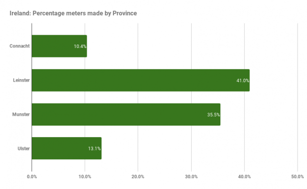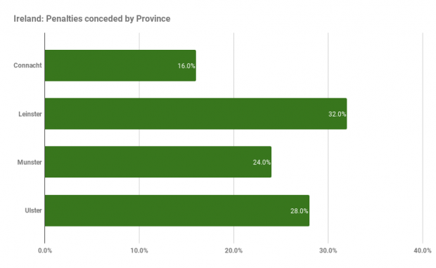 Leinster, enjoy the lion’s share of minutes played, Munster hit their quota but Ulster and Connacht are well behind in terms of time on the pitch.