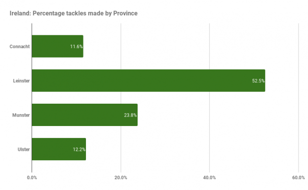 Leinster dominate the defence with Conan coming out on top in an impressive series. With five Leinster players in the top six for tackles made it’s no surprise that the province are the kings of defence.