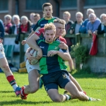 Undeterred, Larne got straight back on the attack with Andrews adding his third penalty before Jonny Cole burst through the last line of defence for Larne’s opening try. Andrews converted and Larne led 16 – 5 to the delight of the home faithful.