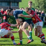 Larne enjoyed the better of the opening exchanges keeping Hinch pinned in their own half. The trusty boot of out half Philip Andrews knocked over two penalties to give Larne a 6 – 0 lead before Hinch broke out with Irish U20 international Conall Boomer crossing off the back of a driving maul to pull the score back to 6 – 5.
