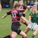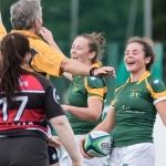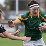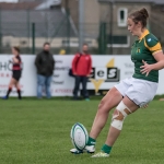 The magnificent Lindsay Peat worked out her World Cup frustrations with three tries in the next 13 minutes, all again converted by Caughey. Ulster’s Larissa Muldoon crossed on the half hour mark and captain Meg Kendal, Niamh Byrne and Emer O’Mahony all scored before the break, Caughey missing only one conversion in the half to give a score of 54 – 0 at the break.