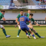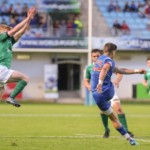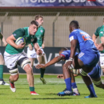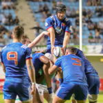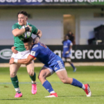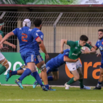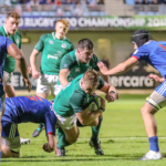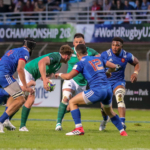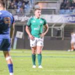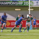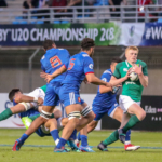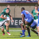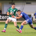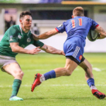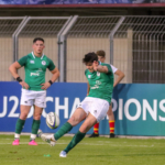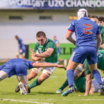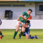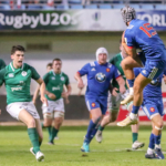 A try saving tackle from Michael Silvester prevented Marty from a second try while Clement Laporte broke the defensive line but could not find Marty in a one on one with the Irish fullback. At the other end Tom Roche thought he had crossed for Ireland’s second try but after a referral to the TMO, the try was disallowed due to a high tackle from Jack Aungier who was sent to the bin.