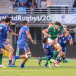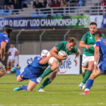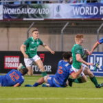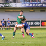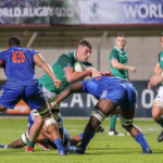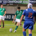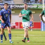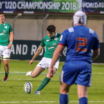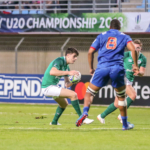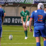 Ireland struggled to get inside the France 22 in the opening quarter of the game but excellent forward play saw Joe Dunleavy cross for Ireland’s first try. A lineout just outside the French 22 was gathered and rumbled 15 metres before the ball was transferred to the backs. Strong carries from Matthew Dalton, Caelan Doris and Matthew Agnew saw Noel McNamara‘s side inch closer with Dunleavy supplying the final push. Byrne added the extras to take the score to 5 – 10 in Ireland’s favour.