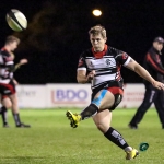 Coleraine spent most of the first half on defence but looked to be taking a 3 – 6 lead into the break thanks to two  penalties to one in reply from . However a late try by , converted by Mitchell gave the profligate home side a 10 – 6 lead as the teams turned round.