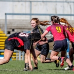 Enniskillen dominated the opening period, racking up a 7-0 lead, with Zara Flack (2), Catherine Graham, Katie Hetherington, India Daley (2) and Millie Cannings all touching down in this cross field version of the game.