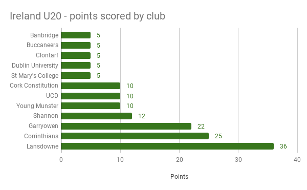 In terms of Club representation the points are fairly evenly spaced with Garryowen, Corinthians and Lansdowne leading the way by virtue of the individual efforts of Healy, Tierney-Martin and Byrne respectively.