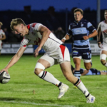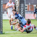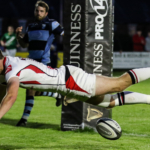With Ulster leading 32 – 0 with minutes left the game was done and dusted but Cardiff got some reward from their efforts throughout the game with a late try from wing Dale Stuckey who chased down his own kick to slide over for the consolation score.