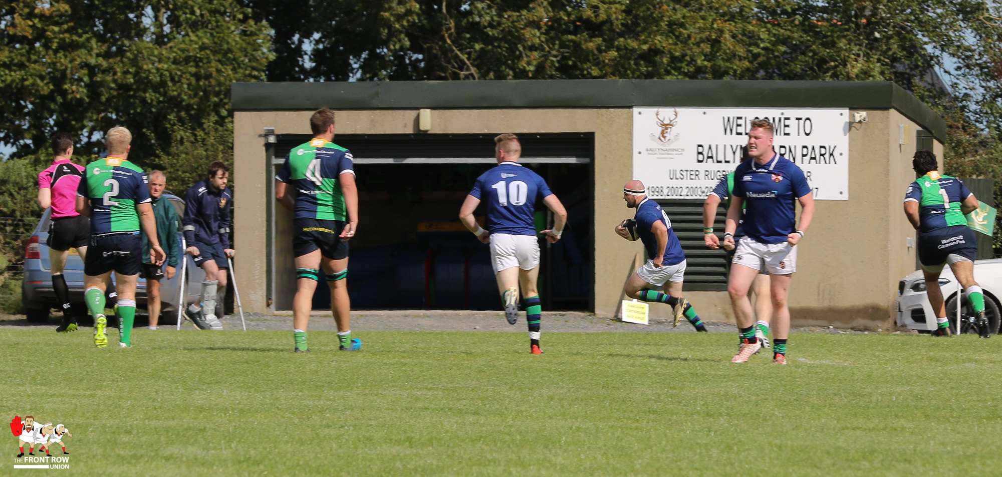 A hat trick from Aaron Cairns saw Ballynahinch pull clear to record a 38 – 27 win against a resilient Queen’s University in the first round of the Ulster Senior Cup at Ballymacarn Park on Saturday afternoon.