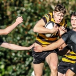 All the scoring occurred in the first half. After a prolonged period of swapping kick’s CCB’s Finlay Parkes was the first to seize the bull by the horns, with a break from midfield off the back of a ruck, the centre outpacing the defence to score out wide.