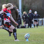 The home side finally got some traction in the game with Hannah Kilgore going over for a try, converted by Vicky Irwin to pull back seven.