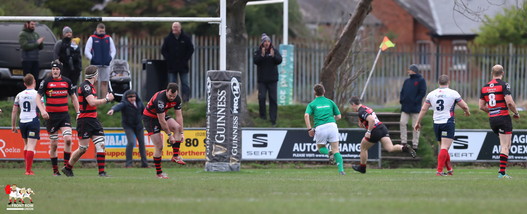 Mistakes from each squad see the ball change hands frequently and there is no score for the first quarter but it’s a dangerous tackle by Malone’s lock Azur Allison on Armagh’s big wing Andrew Willis that changes the game. With Allison sent to the bin and Willis back on his feet after his upending, Armagh crank it up and it’s not long before full back Tim McNeice draws first blood running an excellent line to score under the posts, his out half, Cormac Fox, easily adding the extra points.
