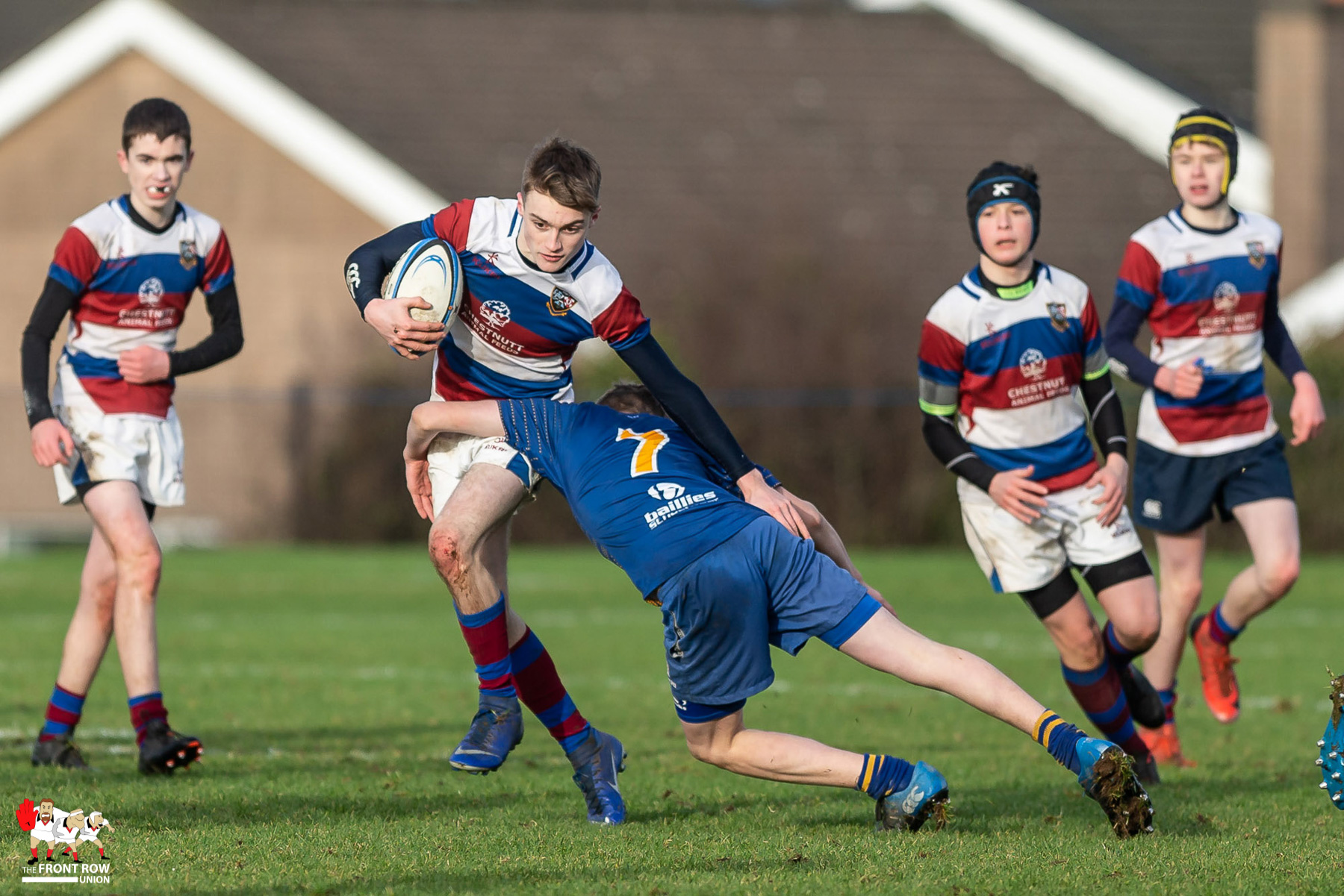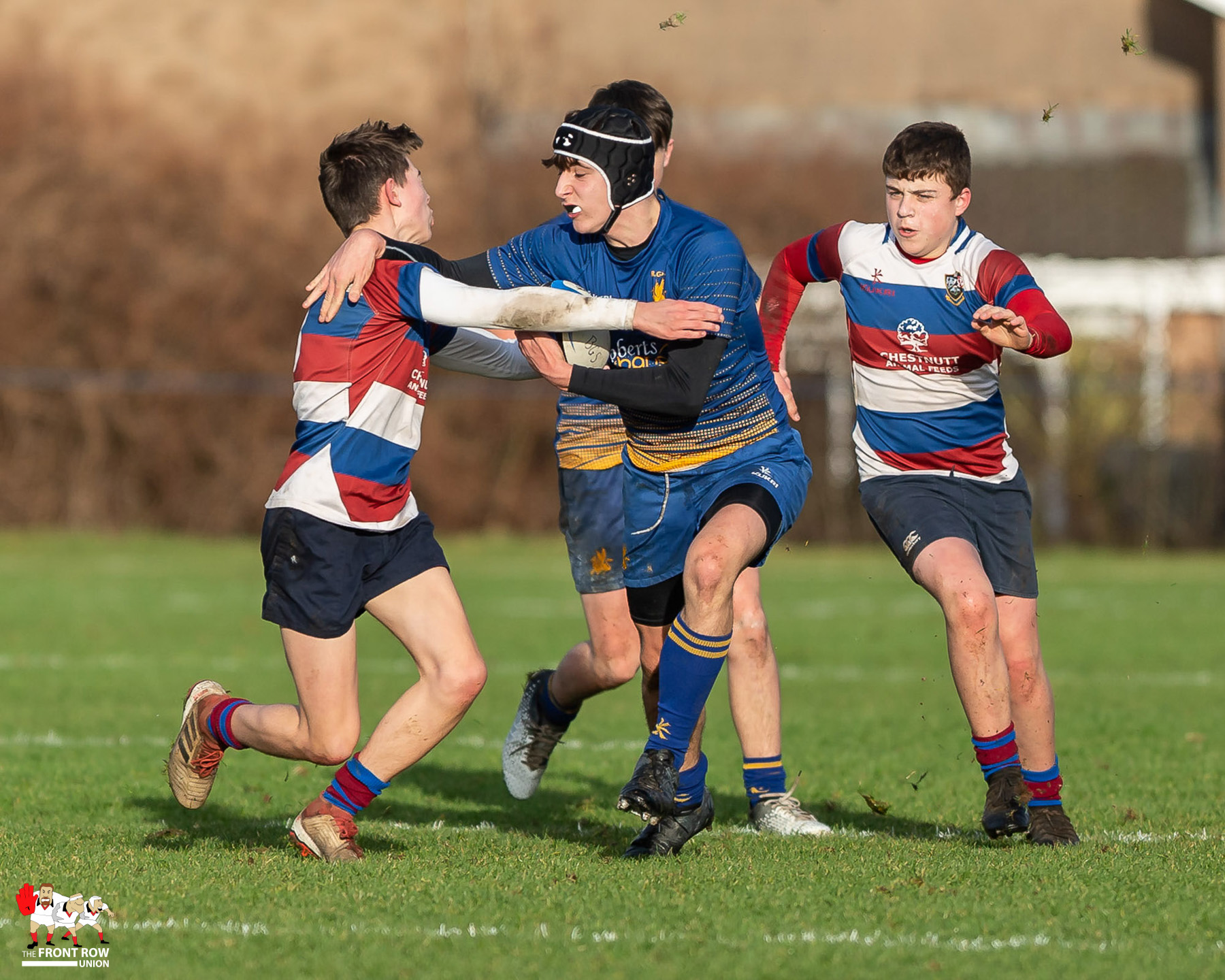 Both defences were on top in the first half for a game played predominantly between the ’22s’. The cold meant that handing was at a premium and play was punctuated by many scrums because of handling errors.