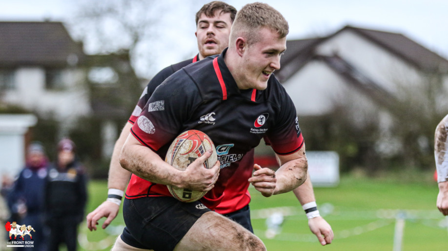 It was nearly 25 minutes before Rainey troubled the scoreboard with Mark Friel going over for the opening try, expertly converted by Harry Evans and two more followed in quick succession as Friel broke through the middle for his second before prop Andrew Nevin finished off a series of offloads in the best move of the game. Evans made light of the conditions with two more conversions giving Rainey a 0 – 21 lead.