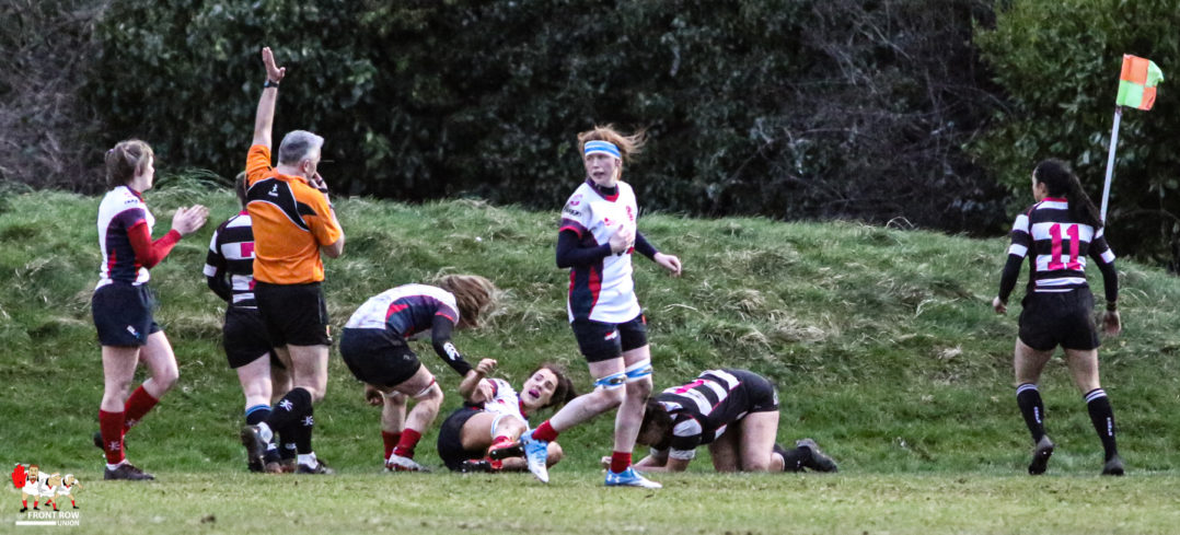 A somewhat chastened Old Belvedere  finally got their act together and a quick penalty saw their flyer Elise O’Byrne White break free minutes later for a long range try converted by to take the score to 10 – 7 as the teams changed ends.