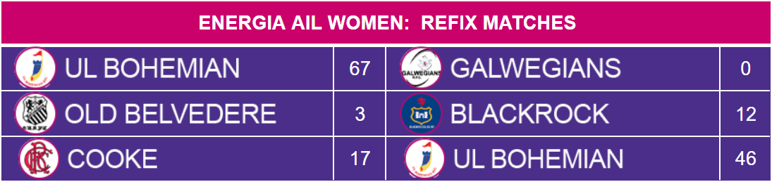 UL Bohemian were the busiest side also managing to fit in their Week 12 refix against Galwegians, the results from all three matches below.