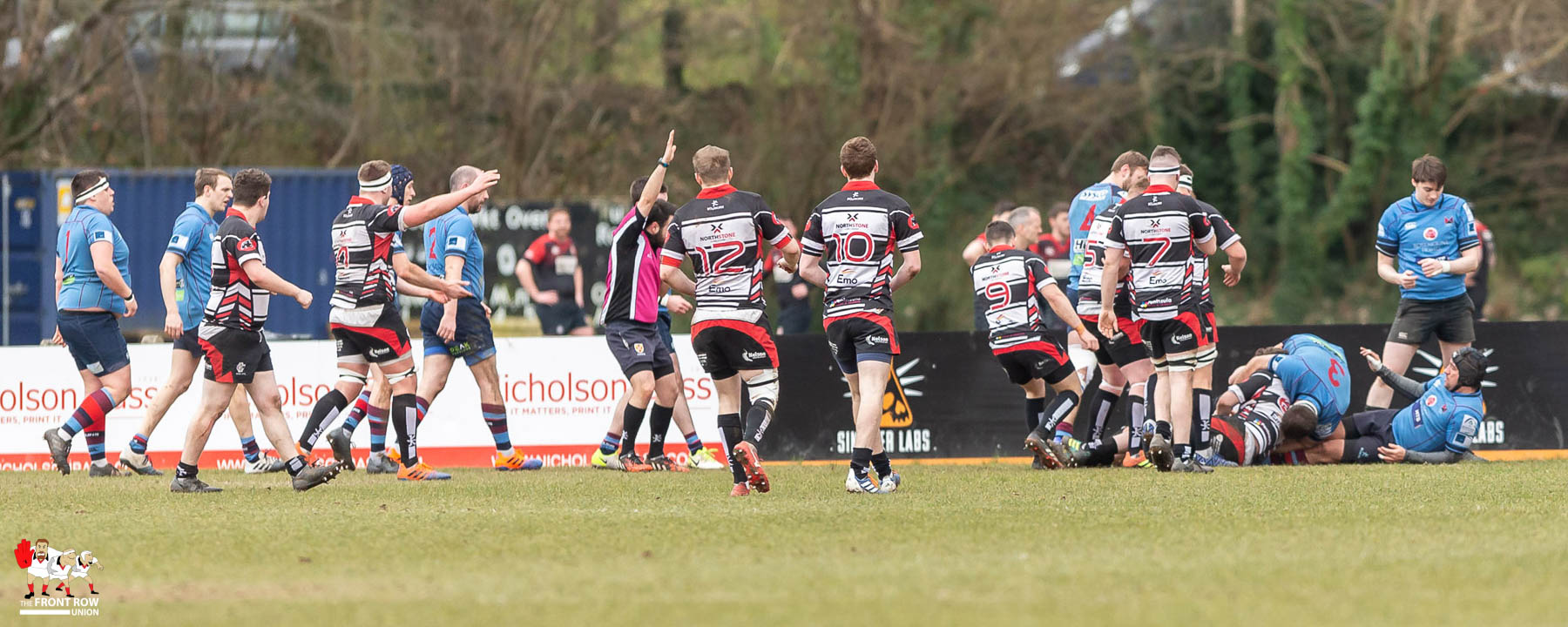 Harlequins found a little territory and possession, but were repulsed by a strong Cooke defence. More Cooke pressure yielded a Flavell penalty goal on 26 minutes and the 1st half scoring was completed by a Jonathan Bachus unconverted try. Cooke lead 27 – 0 at half time.