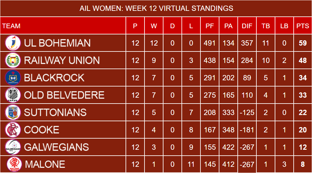 With voting ending last night in the Week 9 refix match between Cooke and Suttonians and the Week 10 refix between Malone and Suttonians we can update our Women’s Virtual AIL table as the teams go into the Week 13 Matches today.