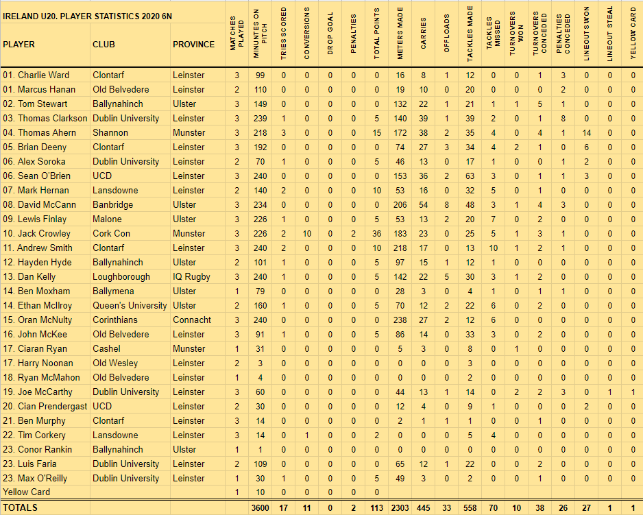 You can view the individual stats of the Six Nations squads below. (Just click on the table to expand it.)