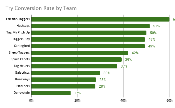Congratulations to Friesian Taggers who averaged an impressive 60% conversion rate throughout the tournament.