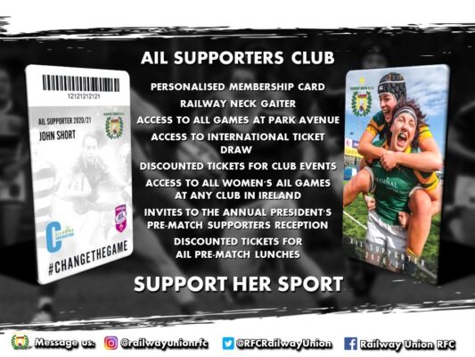 Railway Union announced today that they will be charging admission for their women’s games this season and they are offering an AIL Supporters Club Membership.