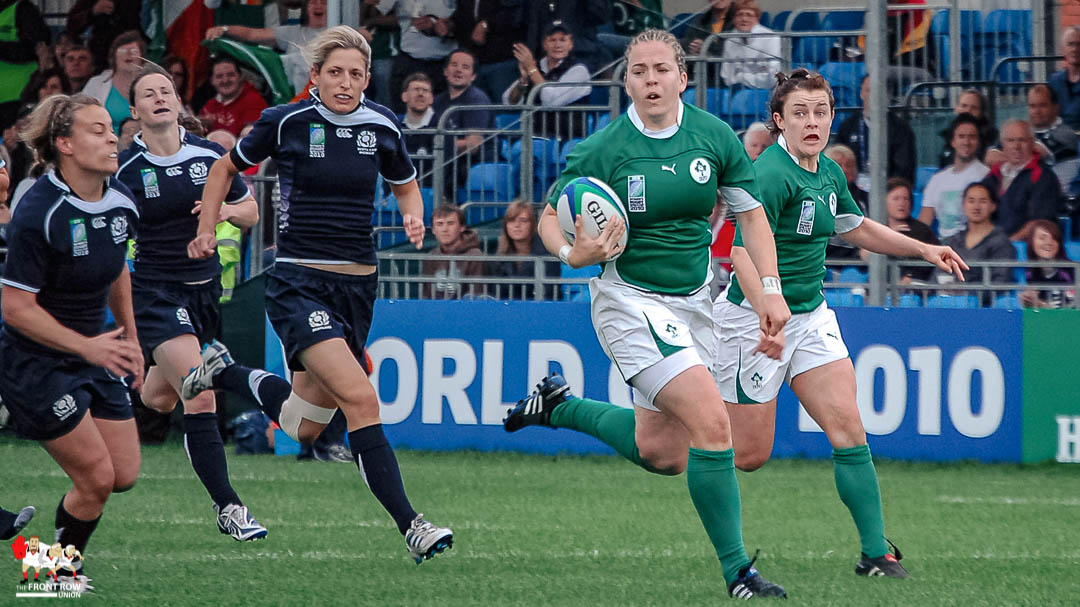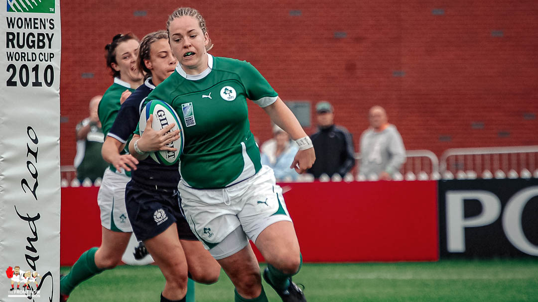 Briggs first caught our eye in 2010 in a barnstorming performance for Ireland Women against Scotland in the World Cup, scoring a brace the 32 – 8 win. The match kick started our coverage of women’s rugby such was the standard displayed by the team, and Briggs in particular, as you can see from the pictures below.
