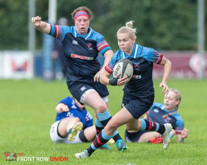 Queen’s quickly established territory & possession, depriving Quins of the ball. Two unconverted tries by Arantza Riba and Aishing McMahon gave Queen’s a 10-0 lead at the end of the 1st period.