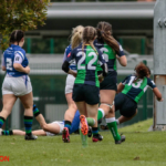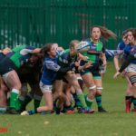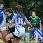 Ballynahinch pretty much dominated the first half with the bulk of the play down the far end of the pitch from my position. The visitors opened the scoring after 10 minutes with prop Niamh Gilgunn smashing through the Queens defence for the first try. Hinch created a few chances in the first half but a great cross field tackle from Queen’s Ally McIlwaine and some strong defence from the Queen’s forwards on their own line restricted Hinch to a penalty from Jane Patton to give Hinch an 8 – 0 lead at half time.