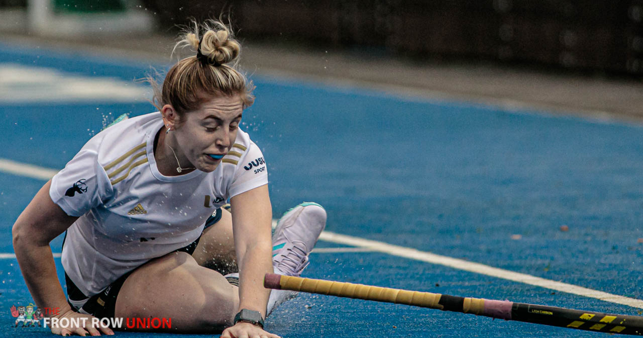 Rebecca Kane takes a spill as the Elks push forward in the second half.