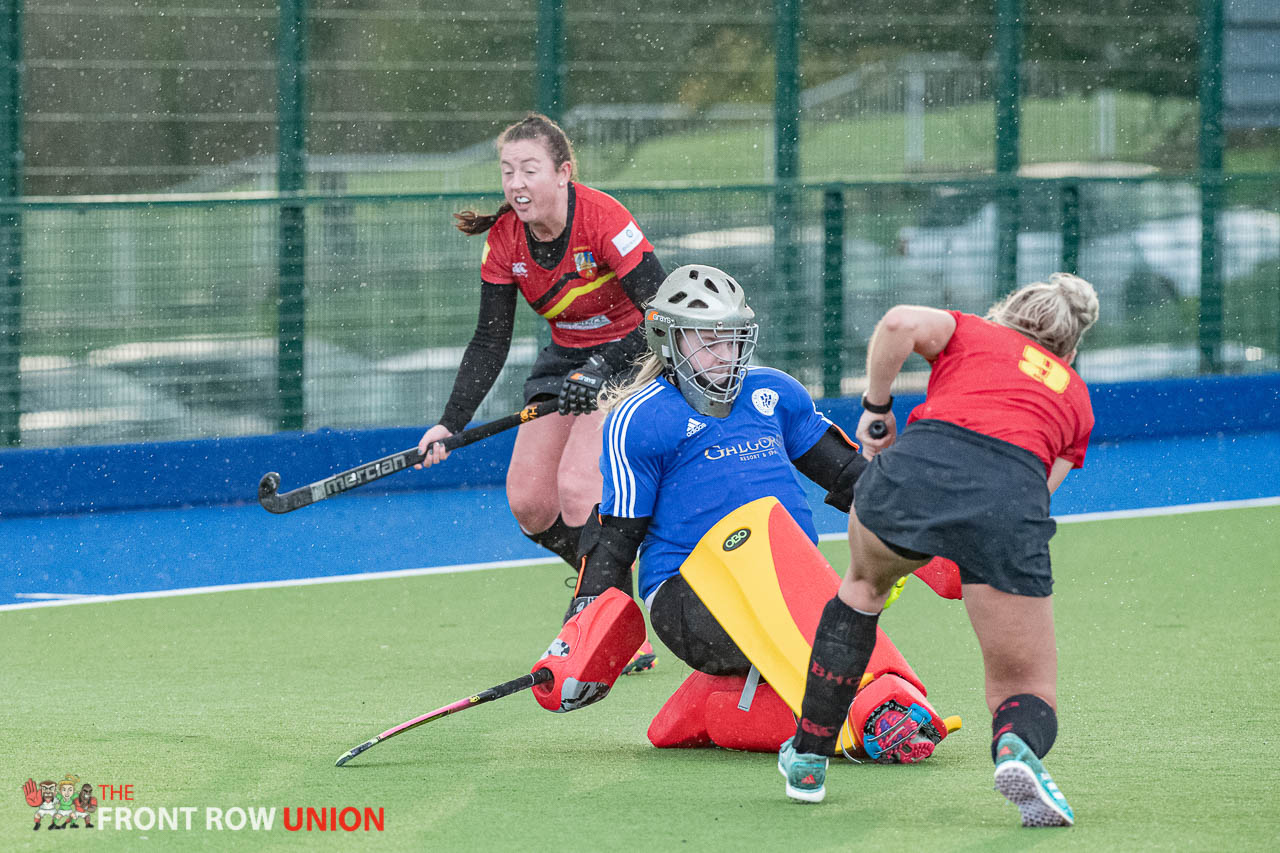 The lead could have been increased on a number of occasions except for the form of the home goalkeeper, Robyn Fullerton who was on great form. Banbridge continued their domination and another goal line interception the the home team’s No 30, Ash Harbinson kept the score to a single goal at half time.