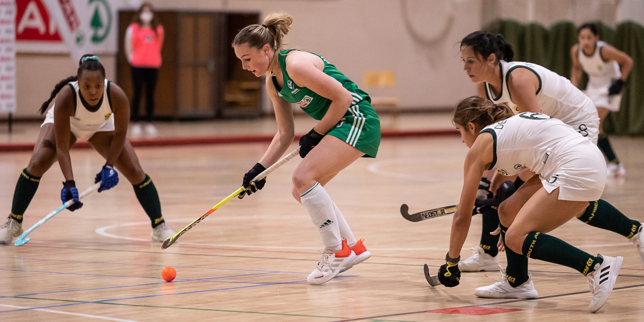 On Friday evening Ireland met South Africa for the 5th game of a 5-match Indoor International Series at Gormanston Park. Ireland won the 1st game, but South Africa won the rest to lead the series 3-1. To all intents and purposes this was a dead rubber, but neither set of players believed that!