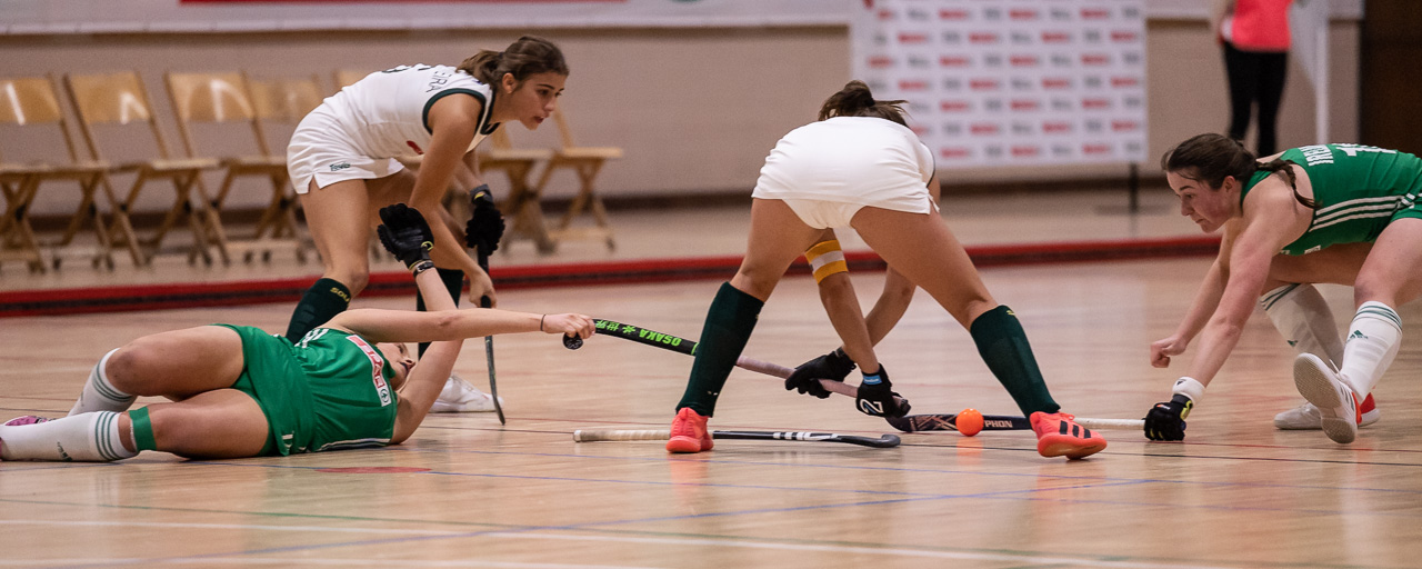 On Friday evening Ireland met South Africa for the 5th game of a 5-match Indoor International Series at Gormanston Park. Ireland won the 1st game, but South Africa won the rest to lead the series 3-1. To all intents and purposes this was a dead rubber, but neither set of players believed that!