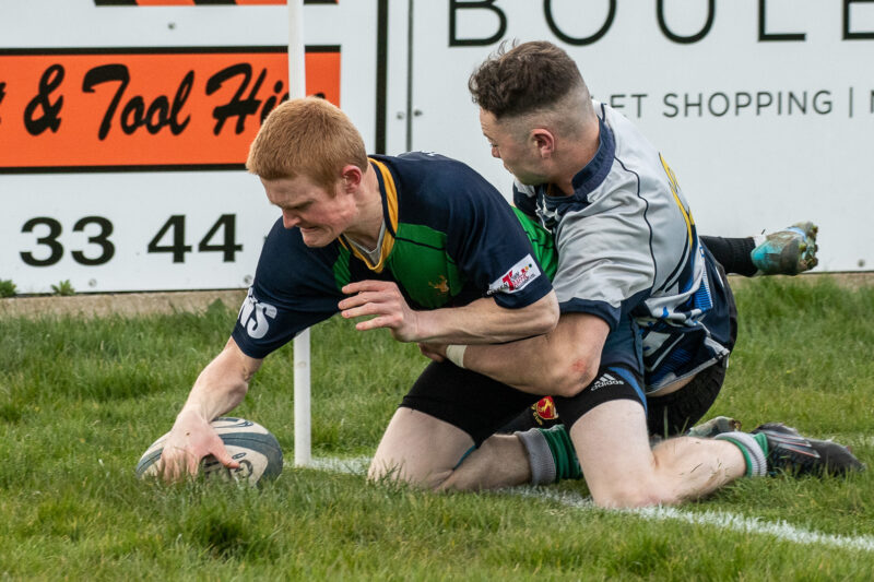 It was no surprise when Ballynahinch’s No 11, Ewan Keers added to the total with a try in the corner shortly after, taking the score to 0 – 8 in Hinch’s favour.
